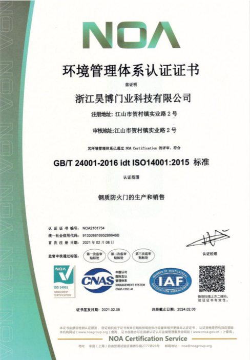 公司一直以來嚴格執(zhí)行ISO9001質(zhì)量體系和ISO14001環(huán)境管理體系標準,建立了完備的科研、開發(fā)、生產(chǎn)、銷售服務(wù)體系。公司是浙江省門業(yè)協(xié)會會員單位,江山門業(yè)協(xié)會理事單位,中國木材與木制品流通協(xié)會會員單位,江山市消防協(xié)會副會長單位。